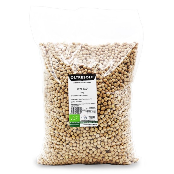 I ceci Oltresole sono selezionati in base ad altissimi standard qualitativi, per offrire un prodotto genuino e controllato. Questi legumi sono un'ottima fonte proteica, ricchi di numerose sostanze nutritive: vitamine A, B, C, E, K, calcio, ferro, fosforo, magnesio, sodio, potassio e zinco. I ceci sono privi di glutine e possono essere integrati nella dieta dei celiaci, ma visto il loro alto contenuto proteico sono indicati anche per chi segue una dieta ipocalorica, vegana o vegetariana. Prima di cucinare i ceci bio Oltresole è necessario lavarli con acqua corrente per eliminare tutte le impurità e in seguito metterli a bagno per 12 ore, così da renderli morbidi e pronti per essere lessati. Per una cottura perfetta dei ceci servono circa 45 minuti, ma si possono ridurre i tempi di preparazione se scegliete di tostarli o di cuocerli a vapore. I ceci sono dei legumi molto utilizzati nella cucina italiana, soprattutto nelle zuppe contadine o nelle minestre. Per chi desidera provare qualcosa di nuovo e dal sapore mediorientale, può preparare con i ceci bio, il famoso hummus o i felafel. Per mantenere intatto il sapore dei ceci è opportuno conservarli in un luogo fresco e asciutto.