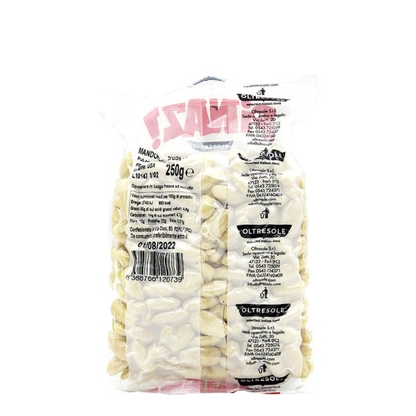Le mandorle crude pelate Oltresole, nel comodo formato da 250 g, sono uno snack salutare e genuino, dal notevole apporto energetico. In seguito alla raccolta e alle prime fasi di lavorazione, le mandorle sgusciate vengono pelate accuratamente, così da svelare un aroma inebriante, un sapore dolce ma intenso, una certa compattezza e il caratteristico pallore. Questa nutriente frutta secca è ricca di proprietà nutritive: vitamine E, sali minerali e anti ossidanti e inoltre sono considerati l'alimento più ricco di fibre. Le peculiarità organolettiche delle mandorle crude pelate Oltresole, tuttavia, sono così interessanti che possono essere impiegate in diversi settori della cucina. Le ritroviamo nella panificazione e nella pasticceria, nella produzione di bevande, tisane e gelati, nel confezionamento di antipasti, stuzzichini, primi e secondi piatti. Possono essere inoltre tostate, caramellate, ridotte in granella e in farina, mostrando un carattere versatile. Trattandosi di frutta secca senza guscio, il prodotto è pronto all'uso e, volendo, lo si può consumare al naturale. Le mandorle pelate Oltresole sono validi alleati nelle diete vegane e vegetariane o possono essere un utile spezzafame per gli atleti o per chi segue una dieta