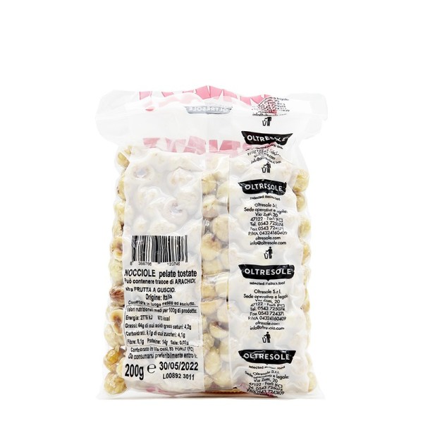 Le nocciole tostate Oltresole, sono lo snack perfetto per chi vuole consumare uno snack genuino e nutriente. La loro inebriante fragranza e la consistenza croccante al palato, ne fanno un cibo ideale per una pausa di puro piacere. Grazie ad un certosino processo di lavorazione e alla cura maniacale nel confezionamento, mantengono a lungo inalterate ogni peculiarità organolettica. Si tratta di nocciole pelate, sgusciate e tostate, pronte per un uso immediato in cucina, che va dalla realizzazione di piatti dolci, creme, pasticcini e panificati, fino alle complesse pietanze salate. Possono essere inoltre caramellate, ridotte in granella ed anche in farina. La caratteristica predominante di queste nocciole Oltresole, è la presenza di diverse proprietà nutritive come la vitamina E e le vitamine del gruppo B, di sali minerali come potassio, calcio, fosforo e magnesio. Le nocciole si caratterizzano per l'alto apporto calorico, quindi è opportuno consumarne in piccole quantità, soprattutto se si segue un regime alimentare a basso contenuto di calorie. Sfiziose e saporite al punto giusto, le nocciole naturali Oltresole sanno come vivacizzare aperitivi e buffet, insaporire insalate miste, rafforzare antipasti finger food e convertirsi in corposi gelati o vellutati parfait