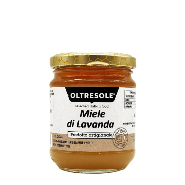 Il Miele di Lavanda Oltresole è un prodotto artigianale italiano. Il colore è giallo chiaro e la cristallizzazione è molto rapida e a cristalli fini, molto piacevoli al palato in quanto di consistenza soffice e cremosa. La nota più caratteristica è data dal profumo che ricorda il fiore di lavanda e dal sapore molto delicato. Questa sua caratteristica lo rende immediatamente riconoscibile e molto apprezzato dai consumatori. La zona più vocata per la produzione del miele di lavanda è la Provenza dove nei mesi di Giugno e Luglio interi campi di lavanda spandono nell’aria un profumo inconfondibile. Molto più difficile risulta trovare un miele di lavanda italiano, come quello proposto da Oltresole, poiché le coltivazioni monoflora hanno rendimenti bassi e per ottenere delle buone produzioni si necessita di enormi distese di campi coltivati. Il profumo inconfondibile e l’aroma delicato rendono questo miele perfetto da assaporare al naturale. Molto gettonato è l’abbinamento con formaggi sapidi e stagionati, come il Fiore Sardo o il Montasio.