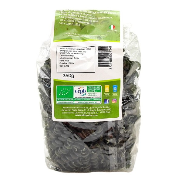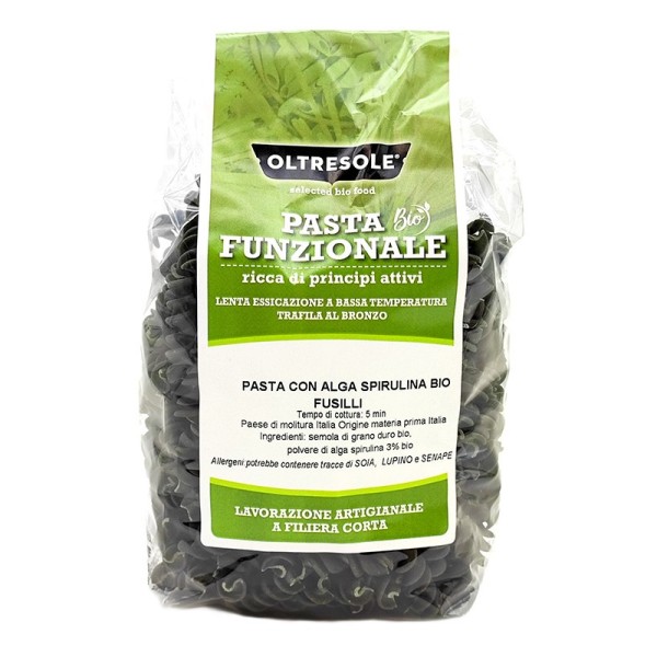 I Fusilli di Grano Duro BIO e Alga Spirulina BIO Oltresole della linea “paste funzionali” sono stati pensati per chi vuole gustare un alimento dal sapore unico e deciso e contemporaneamente non vuole rinunciare al giusto apporto proteico. Si caratterizza per la sua consistenza corposa da un lato e per il suo sapore molto delicato dall’altro; la Spirulina, infatti, interferisce sul colore, rendendola di un bel verde, ma non sul sapore. Grazie alla presenza della Spirulina, che ne aumenta il contenuto proteico, i Fusilli aumentano il senso di sazietà e ti danno la giusta carica per affrontare la giornata, senza causarti quel senso di pesantezza e sonnolenza che tipicamente causa la pasta di grano comune. La pasta di grano duro con Spirulina Biologica rappresenta una valida alternativa per chi desidera un prodotto salutare senza rinunciare al gusto: l’ideale per chi ama la dieta mediterranea ed è alla ricerca di leggerezza, per chi pratica sport, per chi segue una dieta alimentare o per chi semplicemente sceglie uno stile di vita attento e una dieta sana ed equilibrata. Necessita di pochi minuti di cottura. Si consiglia un condimento fresco e leggero poiché la pasta è già arricchita delle sostanze nutritive della Spirulina.