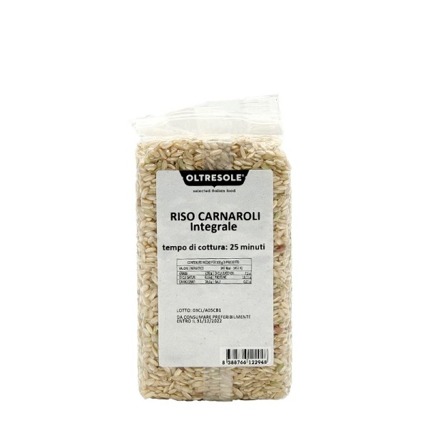 Il riso carnaroli integrale Oltresole è una varietà molto adatta alla produzione di risotto, grazie alla sua elevata capacità di assorbire i condimenti. È diverso dal più comune riso Arborio per il maggiore contenuto di amido, la consistenza più soda e il chicco più lungo. Il riso Carnaroli ha un'ottima resistenza alla cottura, perché presenta maggiori quantità di amilosio. Appartiene alla classe del riso "superfino" e spesso è chiamato "Re dei risi". La versione integrale cuoce in circa 40-45 minuti.