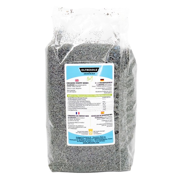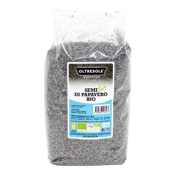 I semi di papavero biologici Oltresole sono un alimento genuino e salutare, molto aromatici e profumati, poiché contengono tantissimi oli essenziali; vengono utilizzati soprattutto per condire e dare un particolare sapore ai piatti. Infatti, non solo i semi di papavero alimentare sono utilizzabili negli impasti di prodotti da forno, ma sono anche utili per fare tisane rilassanti, per arricchire insalate e per dare vita a dolci dai sapori particolari: si abbinano molto bene con gli agrumi, in particolare con limoni e arance. Riconoscibili per il loro classico colore nero-bluastro, questi semi, sono ricchissimi di grassi "buoni" e proteine, forniscono una buona riserva di calcio, vitamina C, magnesio e potassio.