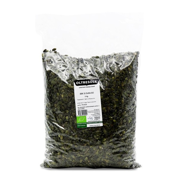 I semi di zucca bio Oltresole sono un ottimo snack, da consumare per merenda o prima dell'attività fisica per fornire all'organismo un'adeguata fonte di energia e alcune importanti sostanze nutritive. Si possono utilizzare i semi di zucca non soltanto come snack, ma anche per preparare diverse ricette: torte salate e dolci, pane e focacce, vellutate ed insalate miste. I semi di zucca sono ottimi per chi segue una dieta vegana, visto che possono essere utilizzati in granella o in scaglie sottili al posto dei formaggi. I semi di zucca biologici di Oltresole sono ricchi di vitamine e minerali come magnesio, zinco e selenio, per il benessere dell'organismo. L'elevato apporto energetico rende i semi di zucca Oltresole, lo spuntino ideale per gli atleti o per chi segue un regime alimentare specifico come i vegetariani o i vegani. I semi di zucca Oltresole sono ottimi da sgranocchiare mentre si sorseggia un cocktail alcolico o analcolico. I semi di zucca Oltresole sono già sgusciati e pronti da mangiare, inoltre il formato convenienza è utilissimo se state organizzando un aperitivo o un party fra amici.