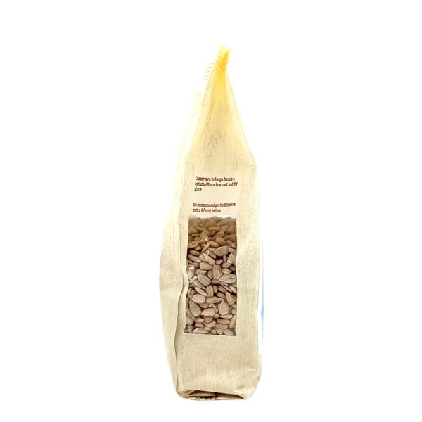 I semi di girasole biologici Oltresole sono i frutti secchi della pianta, un prodotto che può essere utilizzato in numerose ricette in cucina sia semplici che elaborate. I semi di girasole sono ottimi da sgranocchiare al naturale, per uno spuntino veloce ed energetico, privo di grassi, salutare e genuino. I semi di girasole possono essere di diversi colori, Oltresole propone la varietà bianca, dall'aroma intenso e dal gusto pieno e deciso. Ai semi di girasole non è stato aggiunto sale, additivi o conservati, per mantenere inalterato il sapore e le proprietà organolettiche di questa deliziosa frutta secca. I semi sono ricchi di sostanze nutritive, utili per il benessere dell'organismo come le vitamine del gruppo B, l'acido linoleico, i sali minerali ferro, cobalto, manganese, zinco e rame e l'acido folico. I semi di girasole bio Oltresole sono molto utilizzati per arricchire gli impasti di pane, biscotti e pizza, visto il loro sapore autentico e deciso, inoltre possono essere aggiunti alle insalate o tostati con l'aggiunta di un pizzico di sale. Sono un'ottima fonte di energia e naturalmente privi di glutine, per una dieta sana ed equilibrata.