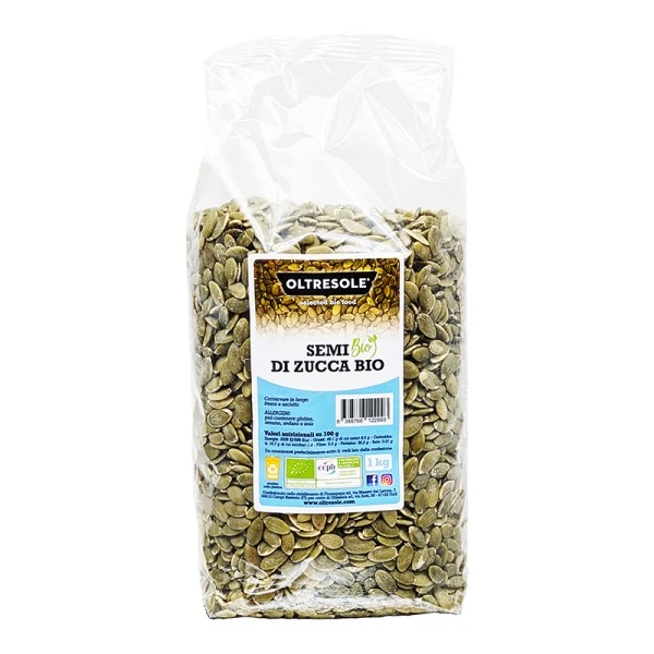 I semi di zucca biologici di Oltresole sono ricchi di vitamine e minerali come magnesio, zinco e selenio e se assunti regolarmente nella propria dieta possono essere un valido alleato per il benessere del cuore e come rilassante naturale. I semi di zucca Oltresole sono ottimi da sgranocchiare per abbassare i livelli di colesterolo nel sangue e per combattere irritazioni e gonfiori intestinali. Ricchi di minerali come il magnesio, zinco e selenio, i semi di zucca sono anche integratori naturali alimentari di fosforo. Molto elevato anche il contenuto di vitamina E, ma soprattutto di cucurbitina, un prezioso amminoacido dalle proprietà vermifughe conosciute sin dall'antichità.