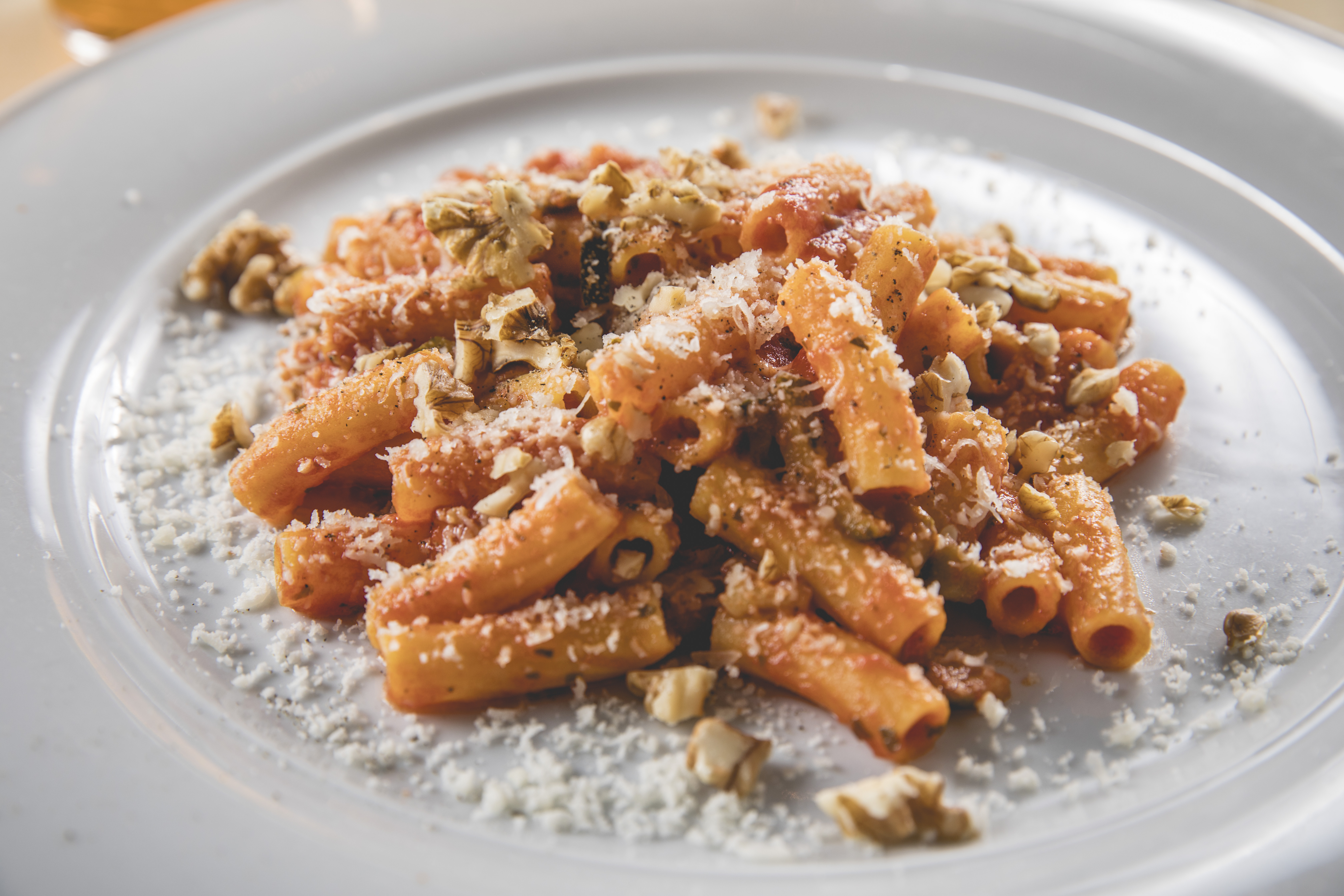 4. Impiatta, spolvera con del parmigiano, una manciata di noci tratate, un pò di pepe e servi