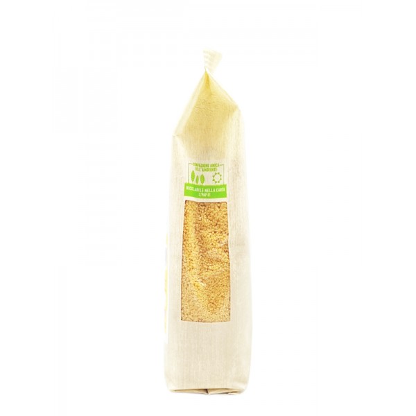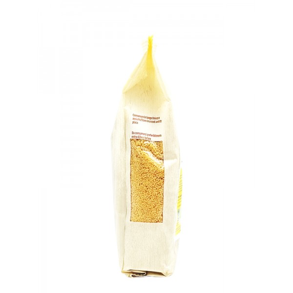 Il cuscus integrale biologico Oltresole (o con grafia francese "couscous") è un alimento tipico del Nordafrica, e, in Italia, della Sicilia occidentale e della Sardegna sudoccidentale. Il suo nome significa “tritato (o ridotto) in minutissimi pezzi”: questo perché si presenta in piccoli granelli di semola di grano duro integrale lavorata con acqua e da cuocere al vapore. Rispetto al grano tenero (Triticum aestivum), il chicco si presenta più allungato, traslucido e, come suggerisce il nome, “duro”. Solitamente esso accompagna carni in umido e/o verdure bollite. Può essere reso piccante accompagnandolo con la harissa (usata soprattutto in Tunisia). In Italia, invece, il cuscus è preparato nel trapanese, in Sicilia; è cotto a vapore in una speciale pentola di terracotta smaltata, ma il condimento, a differenza di quello magrebino, è un brodo di zuppa di pesce.