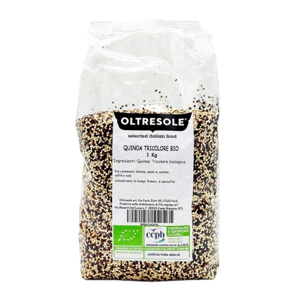 Pur avendo l’aspetto di un cereale, la quinoa non appartiene alla famiglia delle graminacee, ma è il seme di una pianta simile agli spinaci. La quinoa tricolore, proveniente da coltivazione biologica, dell'azienda Oltresole è un mix di semi di quinoa, bianca, rossa e nera. La quinoa bianca ha un sapore neutro, mentre la varietà rossa o nera, si caratterizzano per il sapore più deciso e intenso, donando a questo mix il giusto equilibrio di gusto ed energia. La quinoa, naturalmente priva di glutine è indicata particolarmente per chi segue diete vegan o vegetariane. Questo alimento è ricco di diverse sostanze nutritive, utili per il benessere dell'organismo: fibre, sali minerali (magnesio, potassio e ferro), acidi grassi Omega 3 e 6. Prima di essere cucinata, la quinoa deve essere sempre sciacquata sotto l'acqua corrente e successivamente cotta per 10-12 minuti, in seguito tostare i chicchi per renderla ancora più gustosa. Può essere utilizzata per preparare sfiziosi antipasti, primi leggeri o gustose minestre a base di verdure. Il mix tricolore Oltresole è anche un’ottima base per realizzare burger o polpette vegane o insalate fresche e genuine.