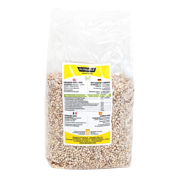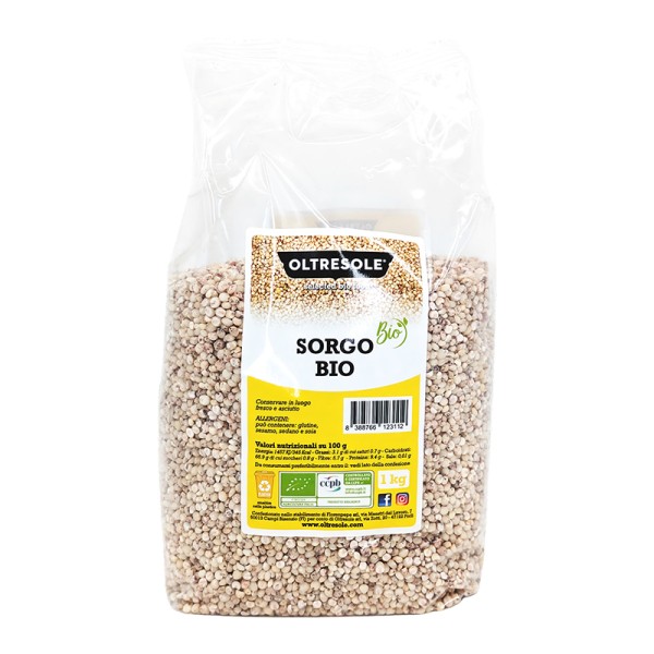 Il Sorgo (Sorghum vulgare Pers), o anche saggina, è una pianta erbacea annuale appartenente alla famiglia delle graminacee. Il Sorgo decorticato venduto da Oltresole è coltivato in Italia da una filiera Biologica. Il suo aspetto è simile a quello del mais e la pianta può raggiungere un'altezza compresa tra uno e tre metri. Originario dell’Africa, il sorgo è oggi diffuso in tutto il mondo: dall’Asia all’Europa, dall’America all’Australia. Il sorgo, infatti, è una specie capace di adeguarsi a condizioni ambientali diverse e anche particolarmente ostili. A livello mondiale, il sorgo rappresenta il quinto cereale in ordine d’importanza dopo mais, riso, grano e orzo. Proprio per questo motivo Oltresole lo propone nella sua linea di cereali Biologici. Il sorgo Biologico Oltresole è un alimento leggero e facilmente digeribile, ideale per la dieta moderna. Difatti il sorgo Cereale si presenta in chicchi dal sapore delicato e dalla struttura dolce e corposa. Facilmente digeribile e ipocalorico, al momento del consumo lascia un senso di sazietà e leggerezza.