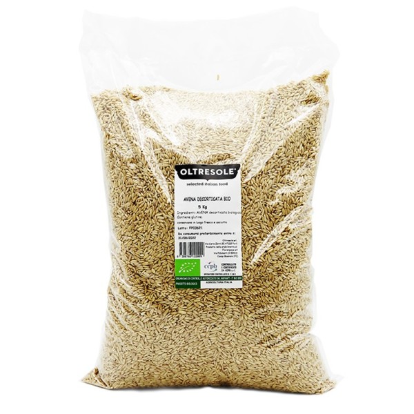 L'avena decorticata biologica è un alimento non molto conosciuto e utilizzato in Italia, mentre nei paesi anglosassoni è uno degli ingredienti principali della colazione. L'avena bio decorticata Oltresole, viene venduta in chicchi, per preparare gustose ricette vegane o vegetariane. L'avena è spesso utilizzata cruda, in fiocchi, per rendere più gustose la colazione a base di latte o yogurt, invece la varietà in chicchi è ottima per preparare zuppe o minestre.Questo cereale è anche un concentrato di sostanze nutritive, utili per il benessere dell'organismo come fibre, vitamine del gruppo B e diversi sali minerali (ferro, calcio, potassio, fosforo, magnesio, rame). L'avena decorticata bio Oltresole, prima di essere cucinata, deve essere sciacquata sotto l'acqua corrente per eliminare eventuali impurità e poi bisogna metterla a bagno almeno per 12 ore, in seguito può essere bollita o utilizzata come ingrediente per insalate e contorni, ma in particolare per preparare biscotti, pane, torte salate e dolci.