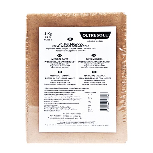 Scopri l’eccellenza dei Datteri Medjool Premium: un’autentica delizia naturale, selezionata per offrirti solo i frutti della massima qualità. Con il loro formato Large e il caratteristico nocciolo, questi datteri sono famosi per la loro dolcezza intensa, la consistenza morbida e il gusto ricco che li rende un’esperienza unica. Ideali da gustare come snack sano, come dolcificante naturale per ricette creative, o per arricchire piatti salati con un tocco esotico. I nostri Datteri Medjool sono coltivati con cura e confezionati in un pratico formato da 1 kg, perfetto per tutta la famiglia o per chi vuole concedersi un piacere autentico senza compromessi.