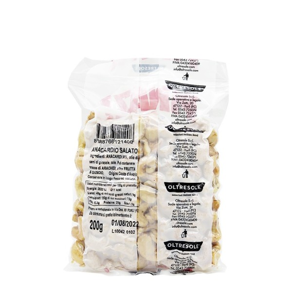 Rappresentando lo stuzzichino veloce per eccellenza, gli anacardi tostati e salati Oltresole, sono i perfetti alleati per i momenti di convivialità. Il processo della tostatura serve a rendere croccanti e saporiti i frutti, mentre la salatura ne amplifica ogni più tenue sfumatura aromatica. Gli anacardi salati, confezionati sottovuoto, per non alterare la loro fragranza, si presentano pronti all'uso, quindi possono essere versati in una ciotola e serviti senza l'aggiunta di ulteriori ingredienti. È comunque possibile lavorarlo ulteriormente per ottenere insoliti manicaretti, sia dolci che salati. Frullando e amalgamando i frutti assieme ad un po' di acqua e qualche goccia di succo di limone, ad esempio, si ottiene un ottimo sostituto del formaggio spalmabile. Gli anacardi, poi, possono essere ridotti in granella e inseriti nelle preparazioni dei risotti orientali, assieme a generosi mix di verdure saltate, spezie e aromi. Gli anacardi tostati e salati Oltresole sono una frutta secca dal sapore deciso e persistente, inoltre sono meno grassi rispetto ad altri tipi di frutta secca. Sono disponibili nella confezione da 1 kg per avere la scorta necessaria per un party o un aperitivo tra amici.