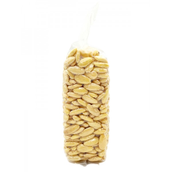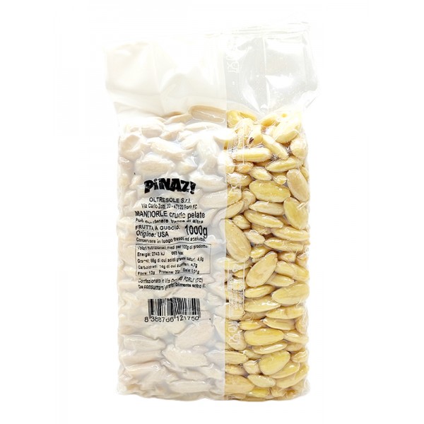 Le mandorle crude pelate Oltresole, nel comodo formato da 250 g, sono uno snack salutare e genuino, dal notevole apporto energetico. In seguito alla raccolta e alle prime fasi di lavorazione, le mandorle sgusciate vengono pelate accuratamente, così da svelare un aroma inebriante, un sapore dolce ma intenso, una certa compattezza e il caratteristico pallore. Questa nutriente frutta secca è ricca di proprietà nutritive: vitamine E, sali minerali e anti ossidanti e inoltre sono considerati l'alimento più ricco di fibre. Le peculiarità organolettiche delle mandorle crude pelate Oltresole, tuttavia, sono così interessanti che possono essere impiegate in diversi settori della cucina. Le ritroviamo nella panificazione e nella pasticceria, nella produzione di bevande, tisane e gelati, nel confezionamento di antipasti, stuzzichini, primi e secondi piatti. Possono essere inoltre tostate, caramellate, ridotte in granella e in farina, mostrando un carattere versatile. Trattandosi di frutta secca senza guscio, il prodotto è pronto all'uso e, volendo, lo si può consumare al naturale. Le mandorle pelate Oltresole sono validi alleati nelle diete vegane e vegetariane o possono essere un utile spezzafame per gli atleti o per chi segue una dieta