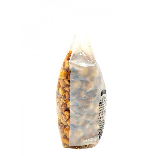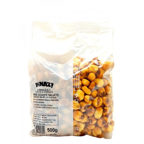 Il mais è un alimento antico già diffuso tra le popolazioni precolombiane e ancora oggi molto amato sia nel nord che nel sud America. Questo cereale arrivò in Europa grazie a Cristoforo Colombo, tuttavia prima come cibo per sfamare gli animali e solo successivamente fu consumato anche dall’uomo, il quale, piano piano ne comprese il gusto e le tantissime proprietà. Il mais è uno snack genuino e sano, che si contraddistingue per il suo sapore deciso e per la sua croccantezza. Il mais tostato Oltresole è ottenuto semplicemente salando i chicchi delle pannocchie ed è ideale per essere mangiato al naturale, tanto è vero che è molto consumato durante gli aperitivi, poiché si sposa perfettamente sia con le bevande alcoliche che con quelle analcoliche. Il mais è uno snack che può essere gustato da tutti, essendo naturalmente privo di glutine e quindi adatto anche ai celiaci. Il mais Oltresole è uno spezzafame con interessanti proprietà energetiche. Il mais tostato e salato Oltresole, nel formato convenienza da 500 grammi, è privo di glutine e molto energetico.