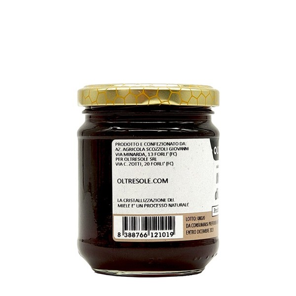 Il miele melata di bosco Oltresole è un prodotto artigianale italiano, ricavato de arnie posizionate in boschi incontaminati del nord Italia. Il prodotto viene conservato in appositi silos per mantenerne la qualità organolettica e viene trasferito nel vasetto solo all'ultimo momento prima di essere consumato. Dal tipico odore di caramello e corteccia e dal colore ambrato scuro, possiede un’ aromatica cremosità: il miele di melata di bosco Oltresole racchiude tutti i sapori del bosco e delle montagne del nostro territorio. È un prodotto artigianale meno dolce e più speziato rispetto al al nettare tradizionale, ed è quindi la giusta alternativa per sperimentare nuovi accostamenti di gusto. Ideale da spalmare sul pane caldo la mattina, ma soprattutto per l’abbinamento con formaggi stagionati e salati, per creare un’interessante contrasto di sapore.