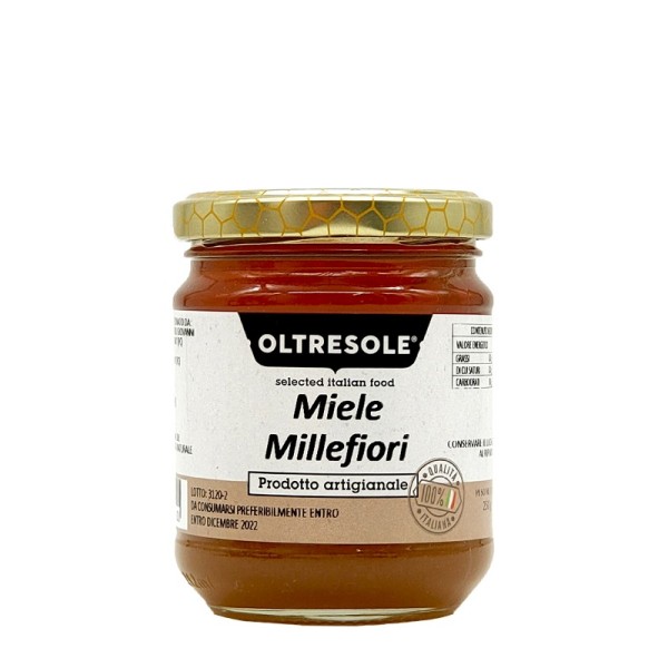 Il Miele Millefiori Oltresole, dai riflessi ambrati e un aroma dolcissimo e variegato, è un prodotto artigianale italiano. Raccolto nel caldo agosto, è un miele naturale che sa regalare ogni volta nuovi odori e sapori grazie alla presenza sempre differente di pollini e fiori, un'eccellenza del territorio che non delude mai. Il Miele millefiori è utile nel trattamento di stati influenzali, aiuta a placare la tosse e svolge funzioni antibatteriche. È una preziosa fonte di energia, utile per sportivi, bambini, persone convalescenti e anziani. È utile anche per l’intestino e l’apparato digerente, può eliminare gli stati di costipazione, bilanciare i livelli batterici e migliorare l’efficienza generale dell’assorbimento dei nutrienti. Ottimo da consumare durante la colazione, ma anche per accompagnare insalate e formaggi.