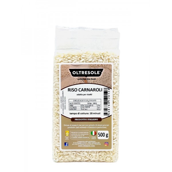 Il riso carnaroli Oltresole è un prodotto artigianale italiano, coltivato tradizionalmente nelle risaie della bassa ferrarese. Il carnaroli è un riso molto pregiato, caratterizzato da un chicco lungo, consistenza soda, alto contenuto di amido e un'eccellente tenuta di cottura, tutte qualità che hanno fatto meritare al Carnaroli il soprannome di "Re dei risi". Restano infatti integri e compatti dopo i 16-18 minuti necessari per farli cuocere. Assorbono bene brodo, salse, altri liquidi, ma anche burro e panna, per una mantecatura perfetta. Inoltre il carnaroli trattiene altrettanto bene aromi e odori. Per queste sue particolarità Il Carnaroli è uno dei risi più indicati nel momento in cui si vuole preparare un risotto. Per quanto riguarda il sapore, il carnaroli è lievemente dolce, per questo un ottima base per esaltare il gusto di qualsiasi ingrediente, dai funghi porcini ai gamberi, dalla crema di zucca al radicchio fino al taleggio. Tra le tipologie di riso, il carnaroli è tra quelli più digeribili ed è più facile assimilarne le proprietà nutrizionali.
