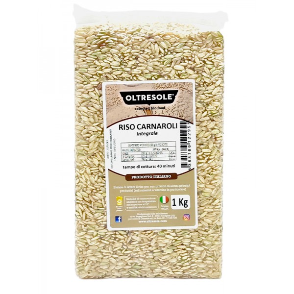 Il riso carnaroli integrale Oltresole è una varietà molto adatta alla produzione di risotto, grazie alla sua elevata capacità di assorbire i condimenti. È diverso dal più comune riso Arborio per il maggiore contenuto di amido, la consistenza più soda e il chicco più lungo. Il riso Carnaroli ha un'ottima resistenza alla cottura, perché presenta maggiori quantità di amilosio. Appartiene alla classe del riso "superfino" e spesso è chiamato "Re dei risi". La versione integrale cuoce in circa 40-45 minuti.