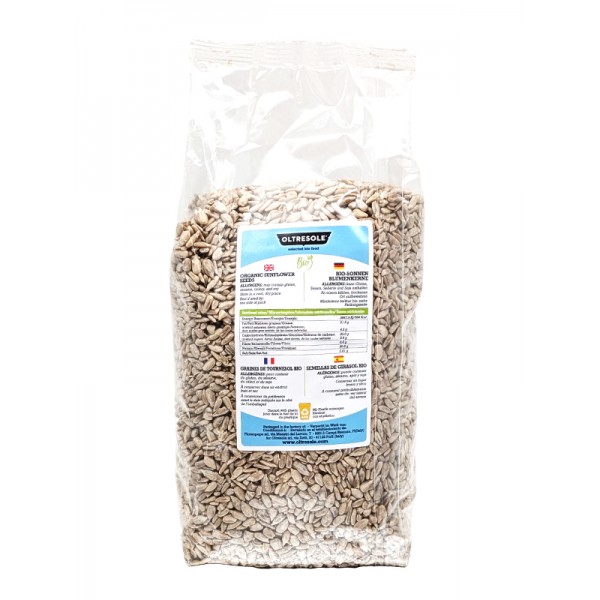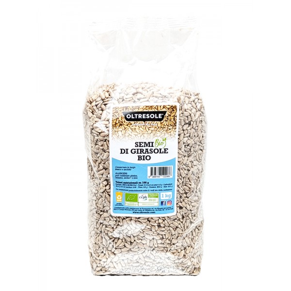 I semi di girasole biologici Oltresole sono i frutti secchi della pianta, un prodotto che può essere utilizzato in numerose ricette in cucina sia semplici che elaborate. I semi di girasole sono ottimi da sgranocchiare al naturale, per uno spuntino veloce ed energetico, privo di grassi, salutare e genuino. I semi di girasole possono essere di diversi colori, Oltresole propone la varietà bianca, dall'aroma intenso e dal gusto pieno e deciso. Ai semi di girasole non è stato aggiunto sale, additivi o conservati, per mantenere inalterato il sapore e le proprietà organolettiche di questa deliziosa frutta secca. I semi sono ricchi di sostanze nutritive, utili per il benessere dell'organismo come le vitamine del gruppo B, l'acido linoleico, i sali minerali ferro, cobalto, manganese, zinco e rame e l'acido folico. I semi di girasole bio Oltresole sono molto utilizzati per arricchire gli impasti di pane, biscotti e pizza, visto il loro sapore autentico e deciso, inoltre possono essere aggiunti alle insalate o tostati con l'aggiunta di un pizzico di sale. Sono un'ottima fonte di energia per una dieta sana ed equilibrata.
